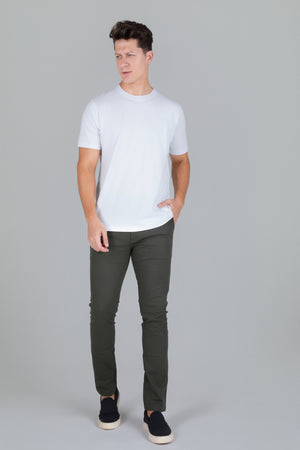 A Camiseta Pima Masculina é confeccionada em 100% algodão Pima peruano, considerado o melhor algodão do mundo por sua fibra longa e nobre. O resultado é uma peça com maciez extrema, caimento impecável e durabilidade superior.